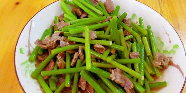 第6道:【蒜苔炒牛肉】牛肉非常適合冬天吃,一傢老小都適合吃。這道菜首先用鹽、油、生抽、淀粉、蠔油醃15分鐘,蒜苔焯水去辛辣味,熱鍋熱油爆炒牛肉到變色,加入蒜苔繼續炒,然後加少許開水炒至牛肉熟就可以出鍋瞭。