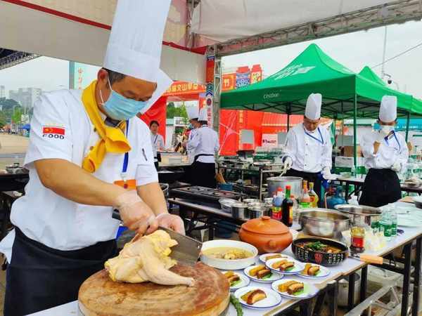 早上九點,一切準備就緒後,各參賽隊各顯神通,根據自傢的特色進行配菜、切菜,然後又根據廚師的經驗進行蒸、煮、煎、炸……一個小時過後,各個參賽隊的拿手好菜逐一出爐。