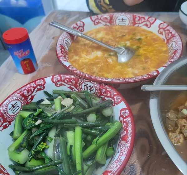 他們傢沒有什麼踩雷菜,隨便點都好吃,幾位朋友點瞭雞鴨魚,還點瞭拆骨肉燜荷包蛋,為瞭張浩然的女朋友考慮,又點瞭清炒蒜薹、青椒炒茄子、幹煎土豆片之類的素菜,這樣葷素結合有辣的菜和不辣的菜,能滿足不同人的需求。