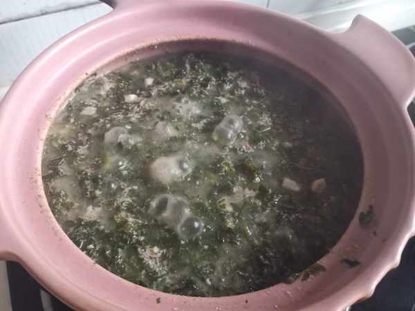 第五步:這時候把蘿蔔纓子放入砂鍋中,繼續小火慢慢煮。