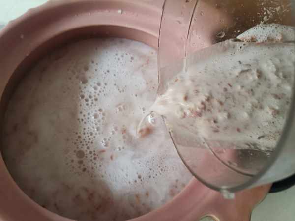 第四步:把土豆加入清水打碎,倒入砂鍋中,大火燒開,改成小火慢慢煮一會兒。