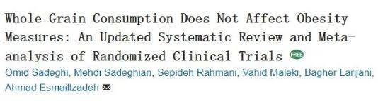 2019年發表在《營養進展》(Advances in Nutrition)期刊上的一篇研究指出:全谷物不能降低體重[1]!