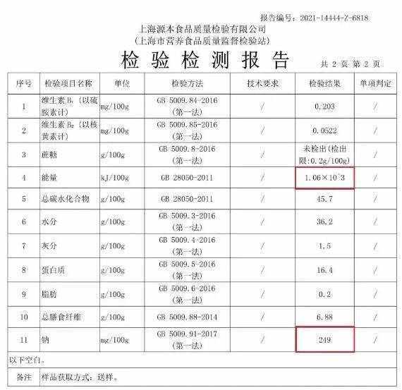去年,上海市消保委將某牌子的全麥歐包送往專業機構檢測,結果顯示: