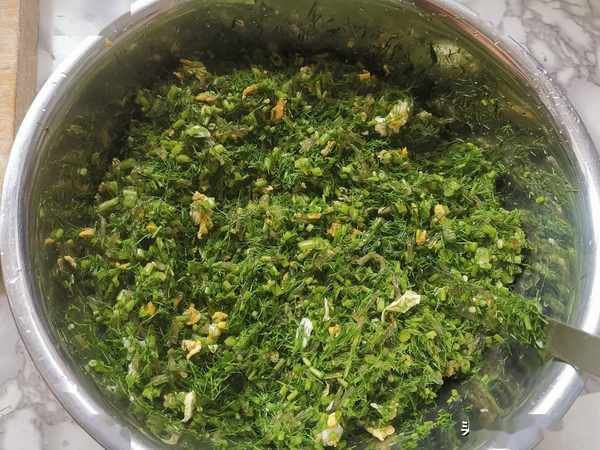 第一步:茴香苗洗淨切碎備用。在這裡我們先來說說茴香苗吧,很多人沒有吃過,茴香苗有一股清香氣味,而且營養豐富,含有豐富的胡蘿蔔素、鈣以及豐富的維他命等。茴香油還有止痛和一定的抗菌作用,是天然的抗生素。鮮嫩的茴香苗經常用來蒸包子,包餃子,炒,做湯等等,有健胃祛濕、行氣,散寒止痛等作用,可以說好處多多。做餡蒸包子比白菜韭菜好吃多了遇到了別錯過哦。