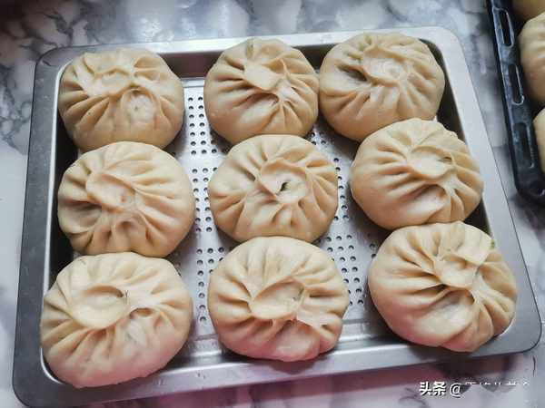 第八步:二次發酵好的包子,入鍋大約蒸20分鐘,熟透,拿出即成。一次吃不完可以冷藏保存,隨吃加熱即可,省時省力特方便。