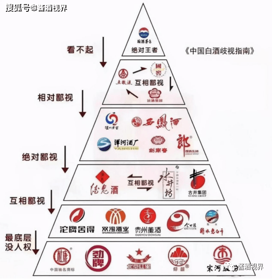 老話說得好:人分三六九等,白酒也如此。前不久,一張刷爆網絡的中國白酒歧視指南被網友熱議,作者用瞭一張金字塔結構的圖片,展現瞭我國相對知名的白酒品牌,其中很多細節確實值得商榷,但是又很符合現實情況,所以才會被大傢所關註。下面就來看看站在金字塔各層的白酒。