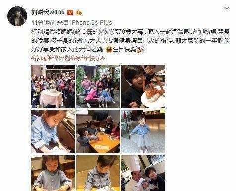 “特別請假陪媽媽(超美麗的奶奶)過70歲大壽,傢人一起泡溫泉,逛博物館,豐盛的晚宴,孩子們長的很快,大人需要常健身讓自己老的很慢,願大傢新的一年都能好好享受和傢人的天倫之樂,哈哈,生日快樂!”劉畊宏如是配文介紹道。