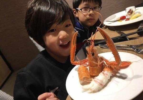 一直以來被大傢評價和小泡芙宛若粘貼復制的小宇恩,對著美食開心的笑瞭起來。講真,和小泡芙真的超像,笑起來的樣子還有點小帥帥的。