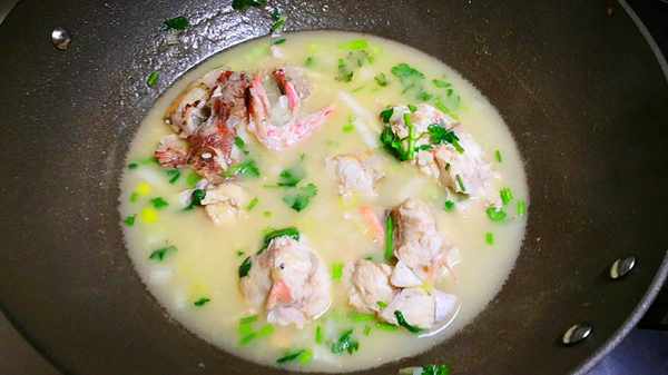 這一步有兩點需註意:一是魚肉不要直接加水燉,煎一煎再燉,魚肉會更香更緊實,而且燉好後也更鮮美、不腥氣,燉出的湯汁更濃鬱;二是燉魚要加開水燉,不要加涼水燉。