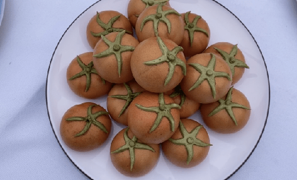 西紅柿汁做的饅頭、西紅柿餅、西紅柿餃子、西紅柿面、西紅柿擺盤、西紅柿甜點,多個西紅柿美食吸引大傢的註意。