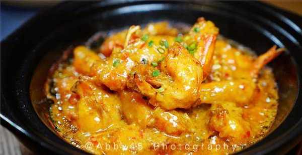 【羅氏蝦】:這道特別之處是用瞭金榜醬,吃到這裡我才知道為什麼他們傢是主打鮮湘碰撞菜,原來是結合瞭粵菜和湘菜兩者精華的意思。這金榜醬就是粵菜常用於和大蝦搭配的,有咖喱的香味卻沒有咖喱的濃鬱和辛辣,聽說寓意金榜題名哦。考生朋友可以一試。