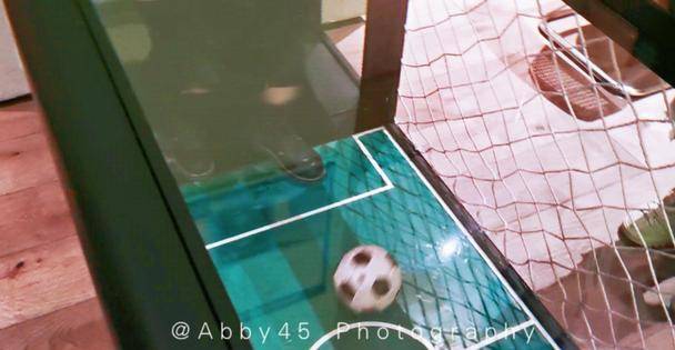 沒想到往左邊一看,更絕。等位區居然可以踢足球,還是坐著踢。可以1VS.1,瘦點2VS.2也是可以的。看來這傢店真的不走尋常路啊。