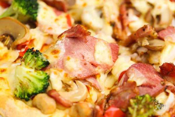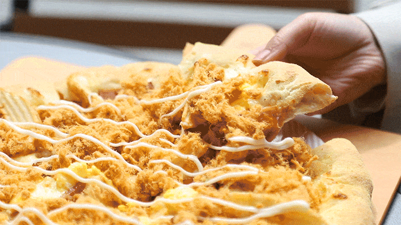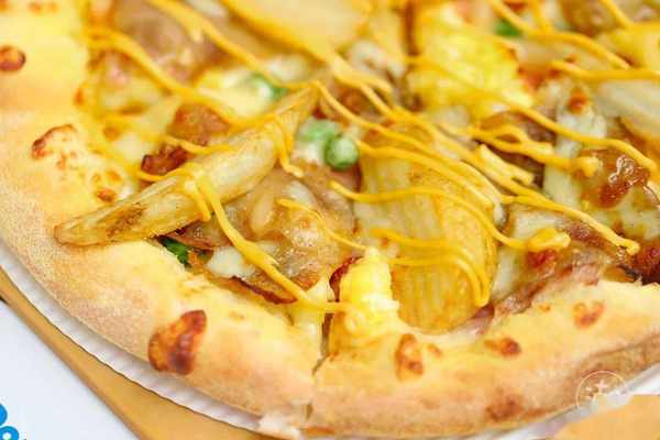 培根多多肉香粉松土豆比薩潮妹兒隻能用加量!加量!加量!來形容瞭~網紅肉香粉松滿當當的一層,美式土豆和培根像是暗藏的驚喜一樣,待你一口吃下,隨之向你襲來的美味暴擊。