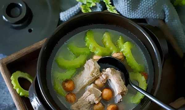 6、湯發白,放入苦瓜和蓮子,繼續小火慢燜15分鐘。