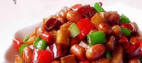 3、豆腐幹炒幹水份後加入煮好的花生一起煸炒。
