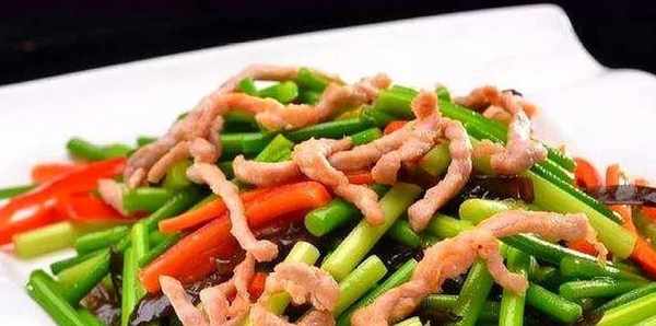 1、金針菇、木耳、西芹洗凈,改刀,汆水待用;