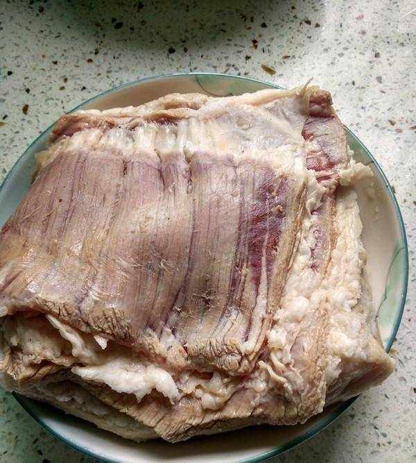 步驟1。將優質豬肚切成方塊,放入沸水中煮半小時