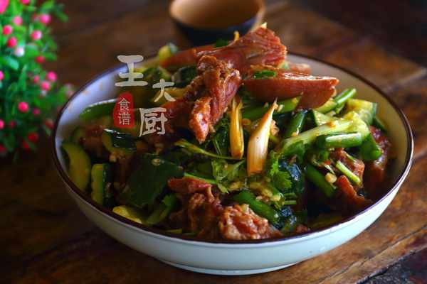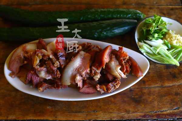 準備食材:豬頭、黃瓜、蒜末、蔥絲、香菜等。