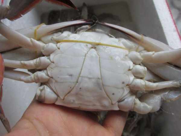 在一個就是把螃蟹拿到手上掂一下,如果很明顯的墊起來有沉墜感,那麼這個螃蟹就不是空包。空包也就是蒸出的螃蟹是空殼,母蟹沒有黃,公蟹沒有膏。