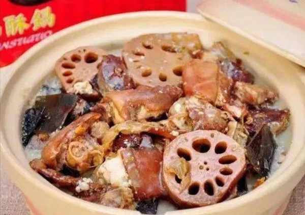 這是一道博山人很喜歡的冷盤菜,當地人一般在年前制作,和當地的美食“凍”“炸肉”“藕盒”是春節期間酒桌上的常見菜品。博山的酥鍋,做工精細,要放白菜、藕、海帶、排骨、鮁魚、凍豆腐、豬蹄等十幾種材料,堪稱是“北方的佛跳墻”!制作過程中,要用陶制砂鍋,放在炭火爐上,十幾種食材按順序,從下到上,層層鋪放,急火燒開後文火慢慢“酥”10個小時甚至更久,直到最頂層的白菜也變成醬色……待到湯汁收好,離火涼透成凍,再分割裝盤享用。完工以後,不論是裡面的藕段還是魚塊,都酥爛軟綿,這就是“酥鍋”的由來。