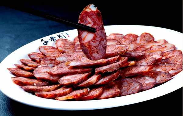 在博山,每當進瞭“臘月門”,傢傢戶戶的陽臺上便掛滿瞭紅燦燦的香腸。做博山香腸非常講究:肉要選用上好的五花肉,一般都用當地的土豬肉,肥瘦比例大概4/6開,太瘦瞭會柴,太肥瞭會膩。豬肉要切成0.5厘米的小方丁,這樣做出來的香腸口感才好。配料因人而異,博山人口味兒厚重,醬油是少不瞭的,還有各種調料,每傢每戶都有自己獨到的配方。灌紮好香腸要掛在通風處使其風幹約半月,不能曝曬,否則肥肉要定油變味,瘦肉色加深。博山石馬鎮蛟龍的香腸,是當地最為地道和認可的。