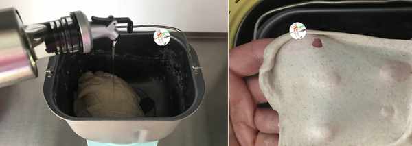 3、十五分鐘,看不到幹粉,面團也光滑瞭,按“暫停”鍵,取出面包桶,加入20克玉米油,繼續揉面。盡管是低糖素油配方且沒有雞蛋,但揉好的面團,依然能拉光滑且透明的薄膜,這說明方子好;其實做這種軟歐包,無需揉出手套膜。