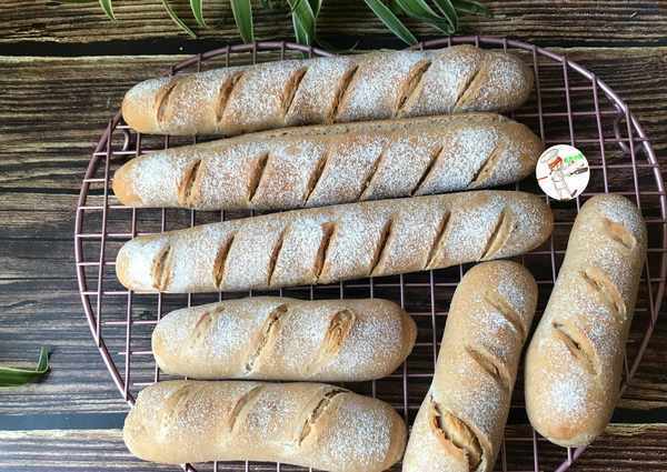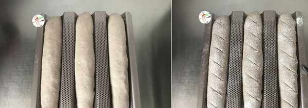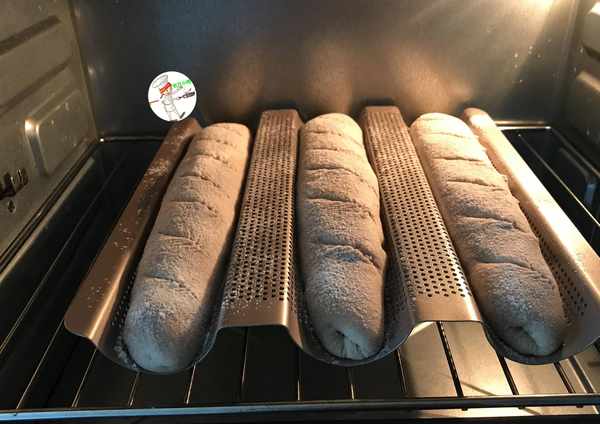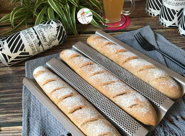 模具:法棍烤盤一個,放3個大的;金色烤盤一個,放4個小的