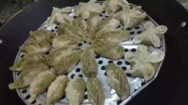 2、用買來現成的餃子比,一按一捏,一隻餃子就做好瞭。