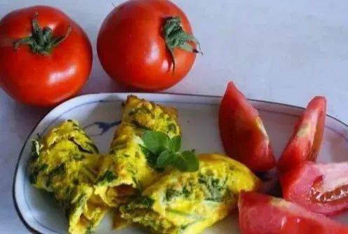 做法:摘新鮮艾草,切碎;打入兩個雞蛋,拌均勻;平底鍋煎;卷成蛋卷,切斷裝飾。
