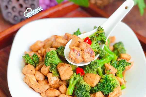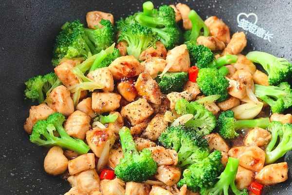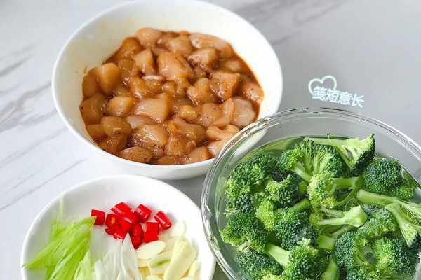 黑胡椒西蘭花炒雞丁:所需食材:西蘭花半朵、雞胸肉1塊、小米辣2根、大蒜3瓣、大蔥半根