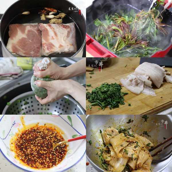 【主料】:香椿一把、五花肉兩塊