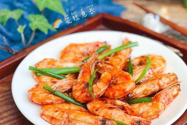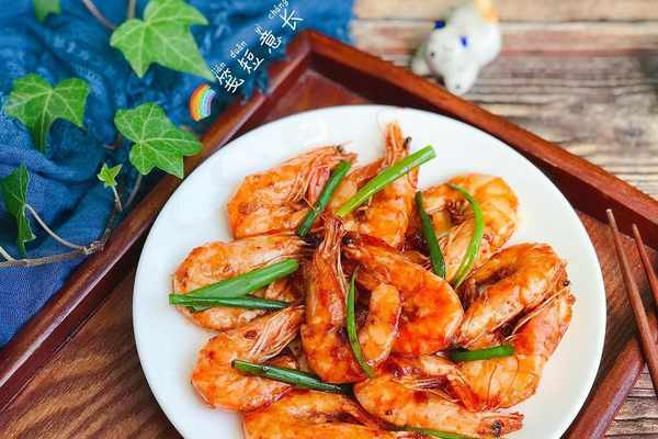 油燜大蝦:所需食材:海蝦400g、小蔥2根、大蒜3瓣