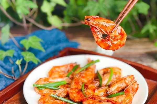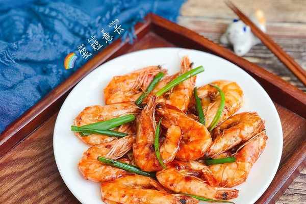 5、將海蝦用熱油煸炒至香氣四溢的橙紅色,就可以將事先調好的料汁兒下鍋瞭,大火將湯汁燒開後改小火燜2分鐘。將鍋中的湯汁燜煮到濃稠的程度就可以瞭,出鍋前撒蔥段點綴一下,既能增香又能提色,賣相和飯店的毫無二致。怎麼樣?做法是不是超簡單?聰明如你,一看就會。有時間也為傢人做一道愛心牌的【油燜大蝦】吧,再簡單的食材浸潤瞭愛的味道也會變得更加美味哦!