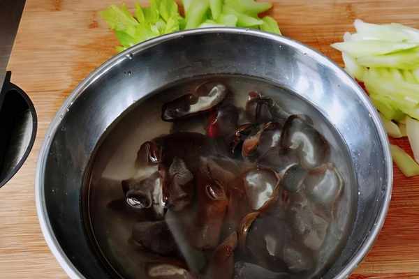 泡發木耳最好用冷水浸泡,並在水裡加一小勺紅薯淀粉攪勻,因為淀粉有粘附性,能更好的清除木耳上的灰塵雜質。泡發好的木耳不能長時間放置,最好是用多少泡多少,當頓吃完。