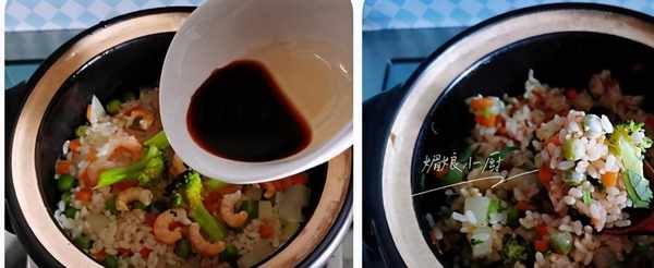 米飯粒粒分明,口感Q彈,蝦香豆糯,土豆綿軟,胡蘿卜清新,一鍋煮一碗飯,鮮香味美,一人食簡單易做,養眼又養胃