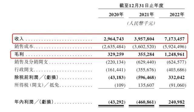 4月3日晚間,主打一站式在傢吃飯餐食解決方案品牌的鍋圈在港正式遞交招股書。招股書數據顯示,2020-2022年,鍋圈總營收分別為29.65億、39.58億、71.74億元;毛利分別為3.29億、3.55億、12.49億元;毛利率分別為11.1%、9.0%、17.4%。2022年錄得利潤2.41億元,已實現瞭盈利。