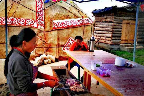 新疆,如果沒有瞭大盤大鍋的手抓飯,沒有瞭吃抓飯、喝大杯酒、唱大聲歌的豪情,那就不是新疆;新疆,如果沒有瞭滿天滿地飄動的孜然味,沒有它主宰著味覺的烤肉、烤羊腰子、烤整條肋骨、烤全羊,那就不是新疆瞭;同樣,如果沒有瞭極不標準、滿街吆喝的聲音,沒有瞭煙火繚繞的食品攤子、烤肉爐子,那就不是新疆。