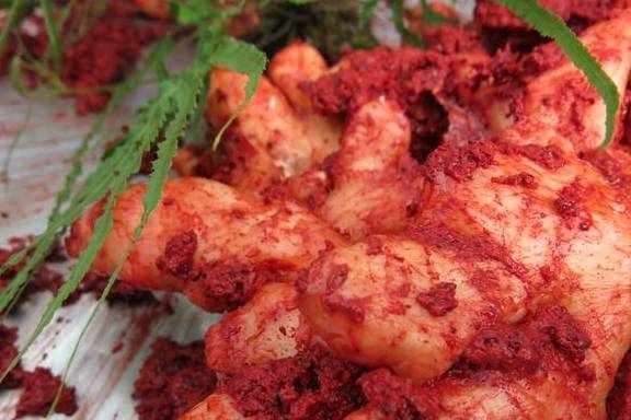 紅粬釀酒剩下的紅糟還可醃制魚、肉、蛋、蔬菜等,具有獨特風味。在東南丘陵地帶。這酒糟薑用的就是這黃酒釀後剩的酒糟做的,這紅粬據《本草綱目》載,“紅粬有消食祛腫、活血通絡、和胃健脾之功效。”從紅粬中提取“紅粬黴素”對治療慢性腸炎、痢疾有效。用紅粬釀成的酒稱為紅粬酒,它具有色澤鮮艷,酒味醇厚的特點。因紅粬黴菌能分泌紅色素(C23H24O5)及黃色素(C17H24O4)故也常用於腐乳、中藥、食品等方面。