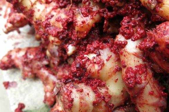 中國產薑的地方不少,而山東是產薑的重要地區之一。山東出產的薑,塊大、徑粗,俗稱“大薑”。對於山東人來說,薑不僅僅是一種做菜的作料,以“解腥臊”,更是一種美食。《論語·鄉黨》:“不撤薑食。”足見聖人孔子,對薑就是極其喜愛的。