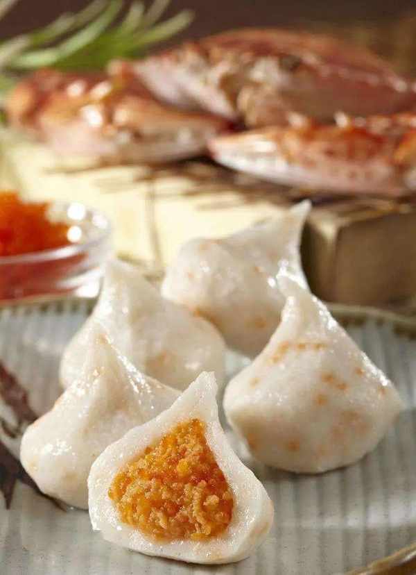 這道菜吃起來外表看來來如白玉,咬一口在嘴裡面,發現餡料卻是金黃的,和金子一般的顏色。