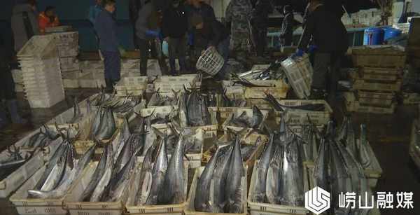 一箱箱春鮁魚被搬運上岸,碼頭上,船主們在忙著稱重,分裝。00後小夥張紹宏是碼頭上最年輕的銷售商,為瞭能夠盡快的將春鮁魚送到市場,他從即墨區趕到這裡拿貨,由於現在產量較小,他隻訂購到瞭一桶小鮁魚,即便如此他也非常高興。