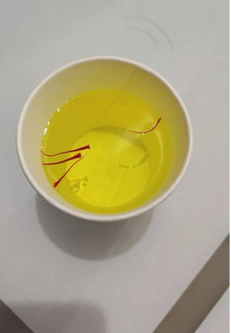 想起營業員告訴我,藏紅花原產地是伊朗,如果泡出來的顏色是紅色的就是假的。