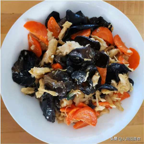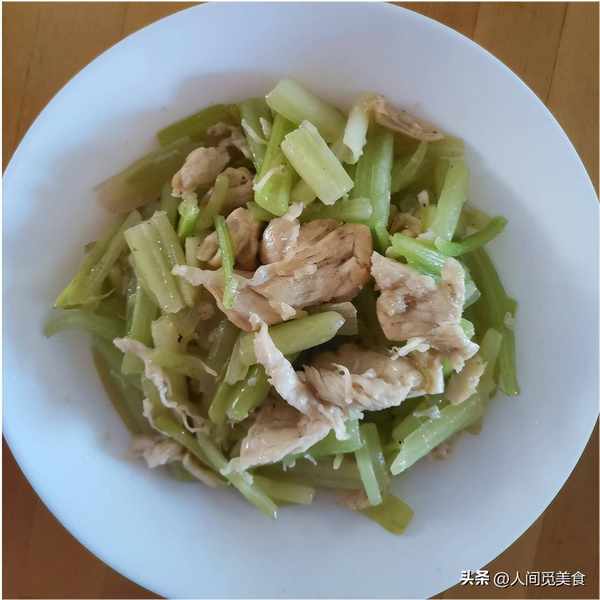 小公雞比較有嚼勁的拿來炒雞瞭,剩下的雞胸肉單吃比較寡淡,馮大姐也沒有浪費,直接水煮後撕開,和黑木耳胡蘿卜一起清炒,還有一些配上香芹一起炒,又是兩盤清爽的傢常小菜,吃起來不油膩還有營養。