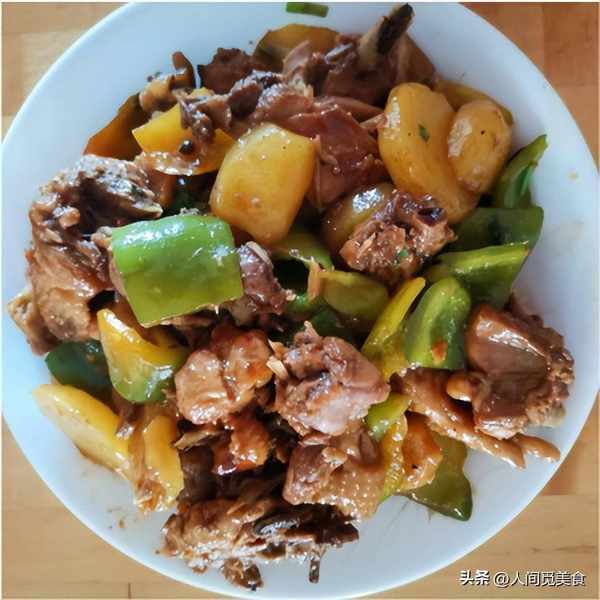 這個雞肉是婆婆專門去鄉下買的小公雞,炒來吃特別香,雞肉切成小塊,油鍋爆炒一下,加水燜煮,雞肉燒八成熟的時候,倒入土豆和青椒塊一起燒煮,這樣土豆吸飽瞭雞肉的湯汁,味道更好,軟嫩入味,比肉還好吃,雞肉也是特別香,一口一個嚼勁十足。