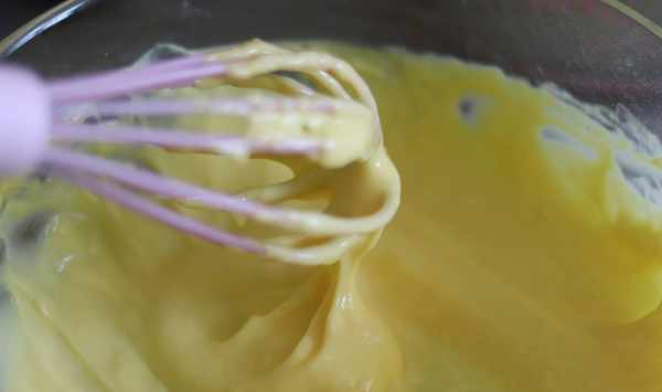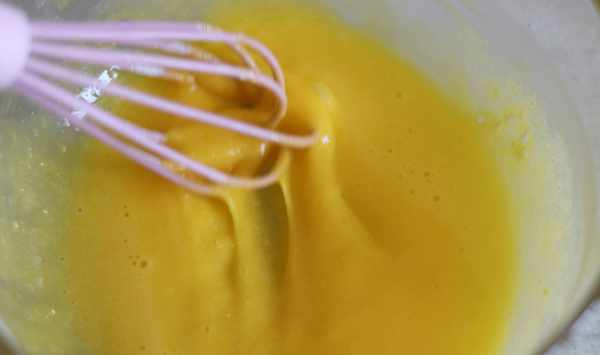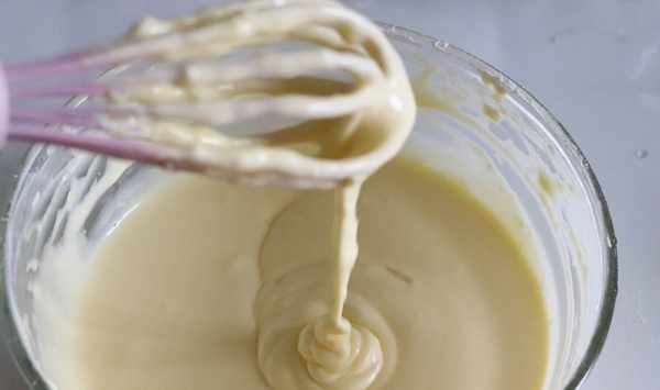 5、用手動打蛋器,攪拌,得到均勻細膩的蛋糊。