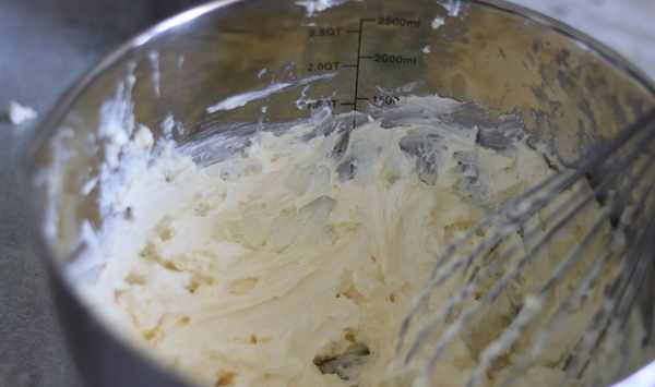 3、黃油和奶油奶酪混合後的狀態,依舊是比較細膩的,如果出現顆粒狀,或者油水分離,可以放入冰箱冷藏5分鐘,再攪拌就能恢復到細膩的狀態瞭。