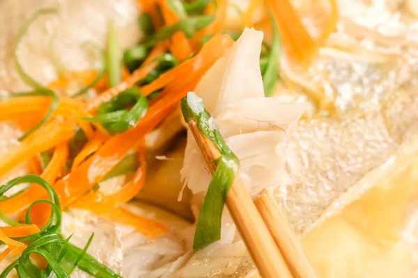 出鍋後擺上蔥絲和紅椒絲點綴即可。