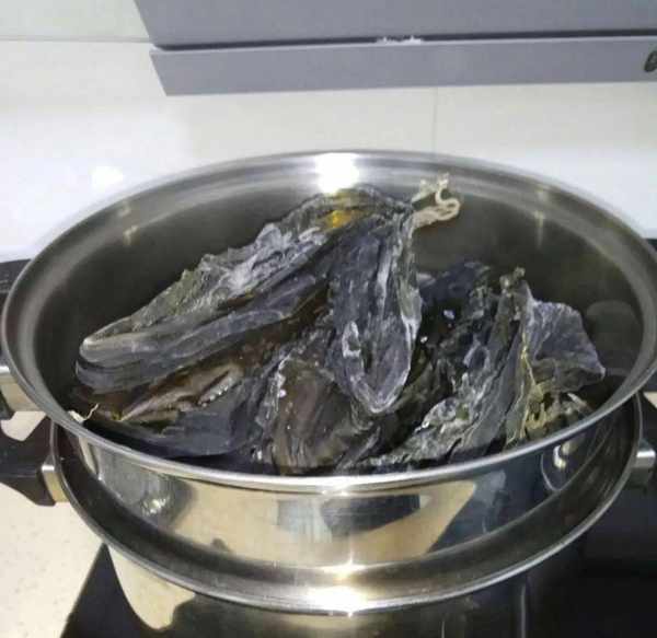 很多人拿到幹海帶就會先洗或者先放在水裡泡發,其實幹海帶不需要先清洗,應該先放在蒸鍋上蒸。因為海帶上有一層白色物質叫甘露醇是具有利尿排毒功效的,容易溶於水,如果先洗再蒸,營養就浪費瞭。幹海帶比較推薦的泡發方法是先幹蒸然後再用水泡,厚一點的幹海帶放在蒸籠裡,幹蒸30分鐘左右,之後再用冷水浸泡半小時。這樣泡發出來的海帶肉厚鮮美,軟糯好吃,營養不流失,好吸收好消化。