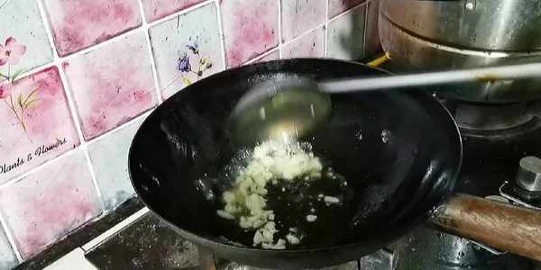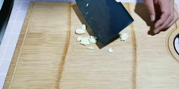 2.大蒜拍扁切成蒜米,蔥白切成蔥花。