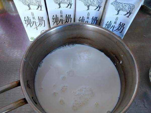2.在鍋裡煮一些開水,然後把它倒出來。這是對鍋進行消毒,然後將純牛奶倒入鍋中,然後將混合瞭蘑菇粉的牛奶倒入鍋裡,充分攪拌均勻。註意,所有其他酸奶用具和容器也應該用沸水消毒。